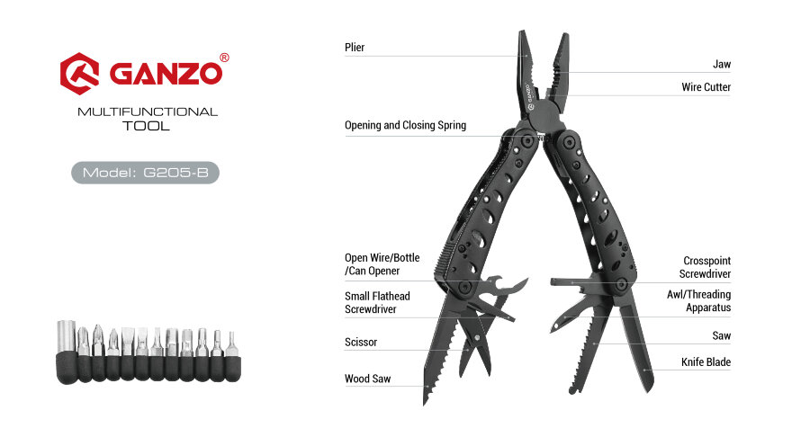 Components of Multi-Tool Ganzo G205-B: